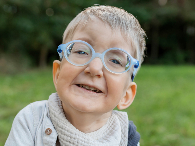 Okulista rozpoznał również krótkowzroczność zwyrodnieniową postępującą. Adaś nosi okulary, widzi bardzo słabo, tylko z bliska. W przyszłości, ze względu na rozwój wady wzroku, będziemy musieli wielokrotnie wymieniać mu okularki.
