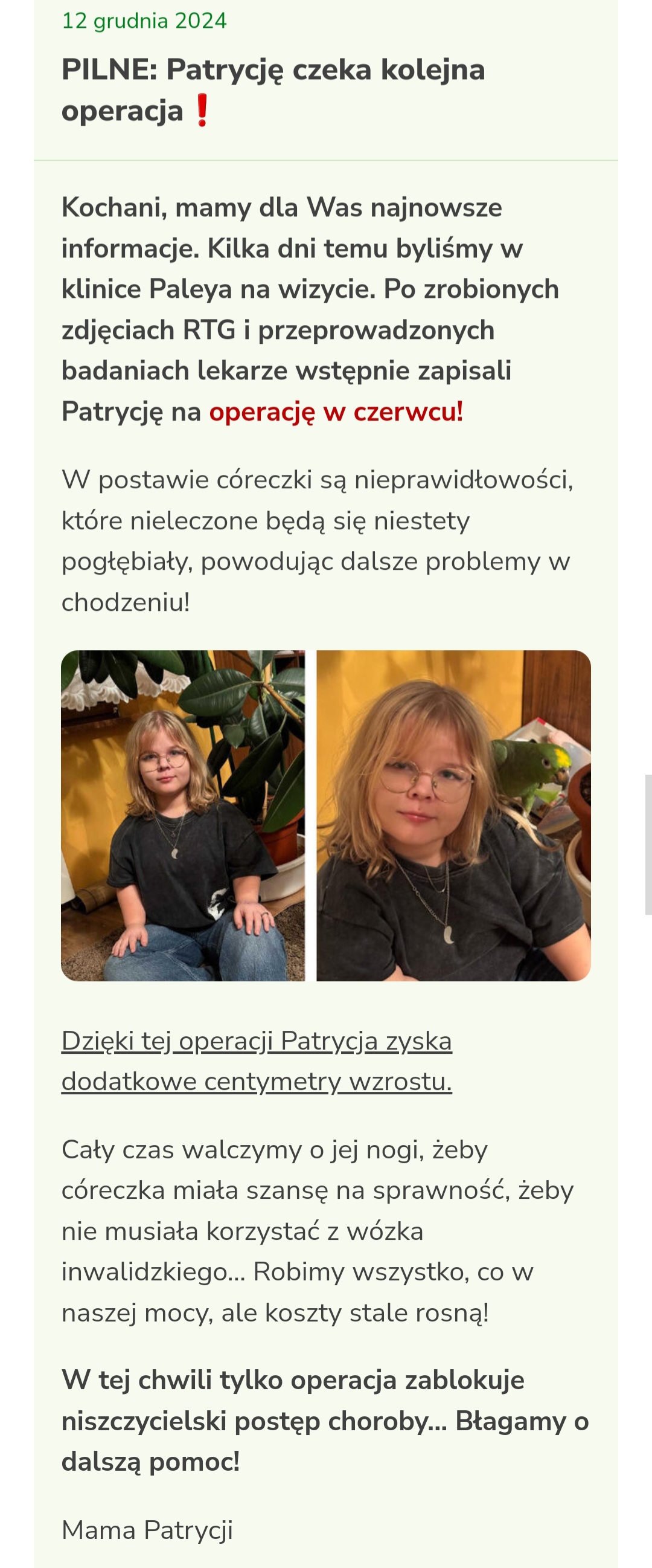 Kochani Patrycja zbiera na operacje. Czas ucieka a zbiórka stoi w miejscu prosimy pomóżcie zebrać brakującą kwote i uchronić Patrycje przed kalectwem. ❤