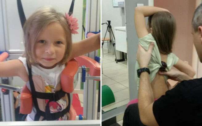 Her scoliosis is bilateral – there is a 40-42-degree curve in the upper part of her spine. Additionally, there is an internal rotation of the spine. In Poland, the only available method is spinal fusion which provides rigid stabilisation. This surgery would mean no mobility in the spine, from the first cervical vertebra to the wing of ilium.