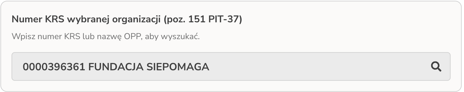 Pomyłka w numerze KRS sprawi, że środki nie zostaną przekazane fundacji. Jeśli rozliczasz się poprzez Twój e-PIT, na liście organizacji wyszukaj "FUNDACJA SIEPOMAGA" lub "0000396361":