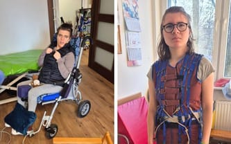 Dominika’s condition, on the other hand, is better, despite her autism diagnosis. She’s very shy and requires an individual approach. Additionally, she has a progressive scoliosis… Both girls have had major spinal surgery and need ongoing rehabilitation.