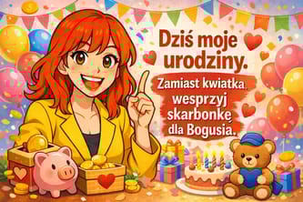 14 marca obchodzę urodziny i jeśli ktoś ma ochotę poświętować ze mną, to będę bardzo wdzięczna, jeśli zamiast kupować mi kwiatki czy czekoladki, dorzuci cegiełkę do tej skarbonki.