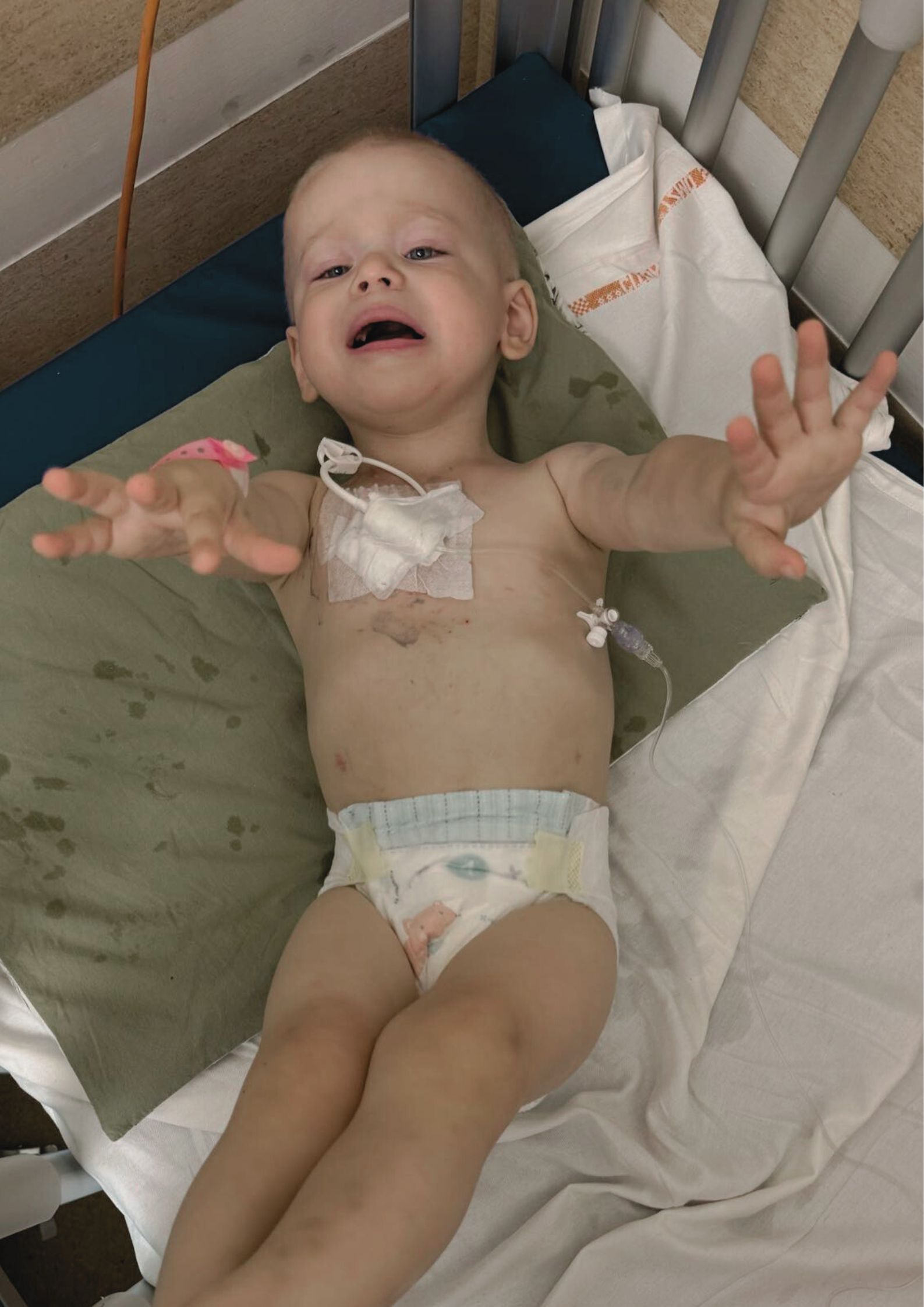 Po niespełna tygodniu okupionym cierpieniem naszego dziecka, które codziennie, jeszcze przed rozpoczęciem jakiejkolwiek terapii było poddawane licznym i inwazyjnym zabiegom diagnostycznym (niemal codziennie Oluś był poddawany narkozie), usłyszeliśmy diagnozę: Neuroblastoma IV stopnia z przerzutami do kości biodrowych, udowych oraz piszczelowych! Nowotwór jest bardzo złośliwy, a przebieg choroby jest nieprzewidywalny z dużym prawdopodobieństwem nawrotów ze zdwojoną siłą.