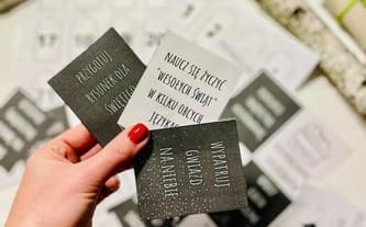 Najciekawsze rzeczy jednak kryją się w środku pudełek. I tutaj wszystko zależy od Was- możecie wykorzystać zadania, które przygotowaliśmy (w sumie 36 kart- wybieracie co pasuje do waszych pociech), możecie dołożyć coś małego, słodkiego.