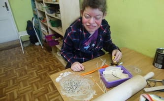 Na zdjęciach przedstawiamy uczestników Warsztatu Terapii Zajęciowej podczas zajęć oraz prace ceramiczne wykonane w naszej pracownii.