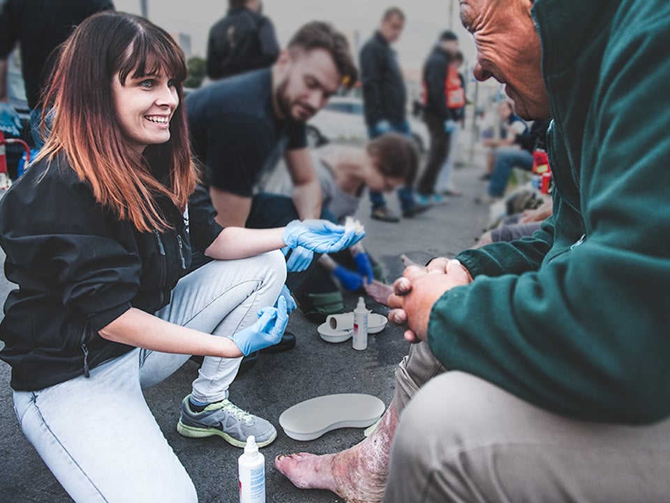 Projekt Medycy na Ulicy jest adresowany do osób dotkniętych bezdomnością i wykluczeniem społecznym. Nasz zespół streetworkerów stara się dotrzeć do osób w kryzysie i ułatwić im dostęp do pierwszej pomocy medycznej oraz psychologicznej, co często pozwala zacząć długi proces wychodzenia z bezdomności… Specjalnie dla cierpiących na zaburzenia potraumatyczne byłych przedstawicieli służb mundurowych i ratowniczych, którzy doświadczają bezdomności, stworzyliśmy projekt Dach nad Głową: nasi podopieczni są objęci kompleksową pomocą zespołu interdyscyplinarnego, a po przejściu specjalistycznej psychoterapii mogą skorzystać z mieszkania treningowego.