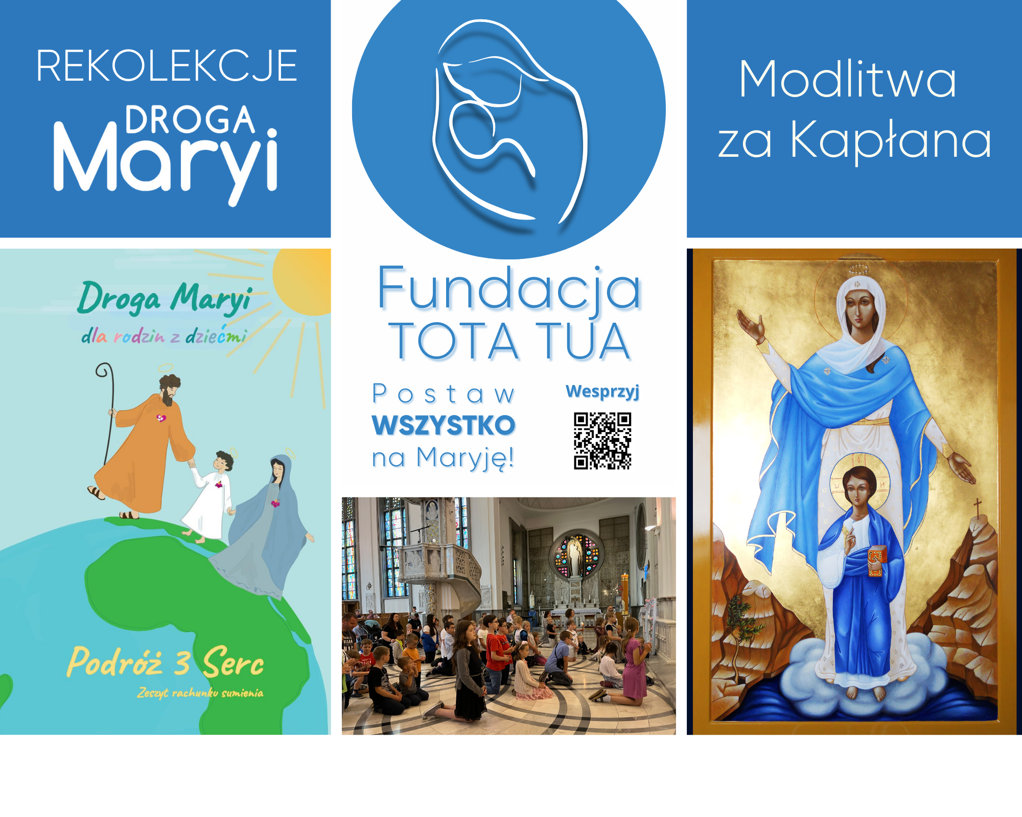 Materiały do rekolekcji dla dzieci - Wchodzimy do Arki całą rodziną oraz Podróż 3 Serc można znaleźć na stronie: https://www.totatua.org/wchodzimy-do-Arki-cala-rodzina (otwiera nową kartę)oraz https://totatua.org/podroz-3-Serc (otwiera nową kartę)