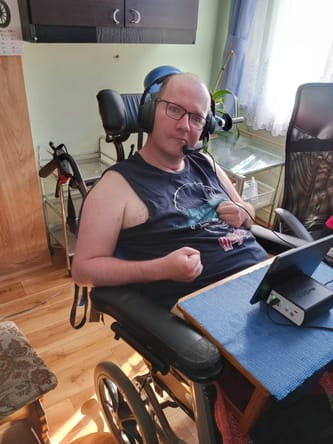Paweł od wielu lat po udarze walczy o swoją sprawność, o nowy zasób słów ,o ruchy rąk i nóg . Osiągnął już tak wiele !! . Od stanu kiedy poruszały się tylko oczy , kilka lat treningów biofeedback , mówi coraz więcej i wyrażniej. Neurologopeda też robi cuda . Ręce też coraz częściej łapią i puszczają przedmioty , co jeszcze niedawno było nie do pomyślenia. Na zajęciach potrafi poruszać myszką i malować . Staramy się dać mu jak najwięcej samodzielności, żeby chociaż potrafił cokolwiek zrobić "przy sobie ", bo nie wiadomo jak długo jeszcze dane nam będzie opiekować się nim. Nie mamy 20 lat, a zdrowie i sprawność już nie taka jak dawniej. Opieka 24 godziny na dobę jest bardzo wyczerpująca.