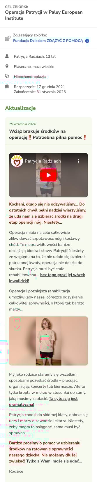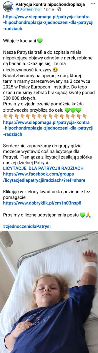 Patrycja kontra hipochondroplazja - zjednoczeni dla Patrycji Radziach