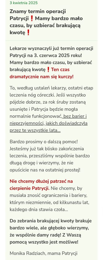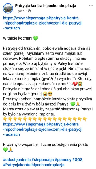 KOCHANI PROSIMY POMÓŻCIE NASZEJ PATRYSI BEZ OPERACJI GROZI JEJ ŻYCIE NA WÓZKU INWALIDZKIM. 🥺