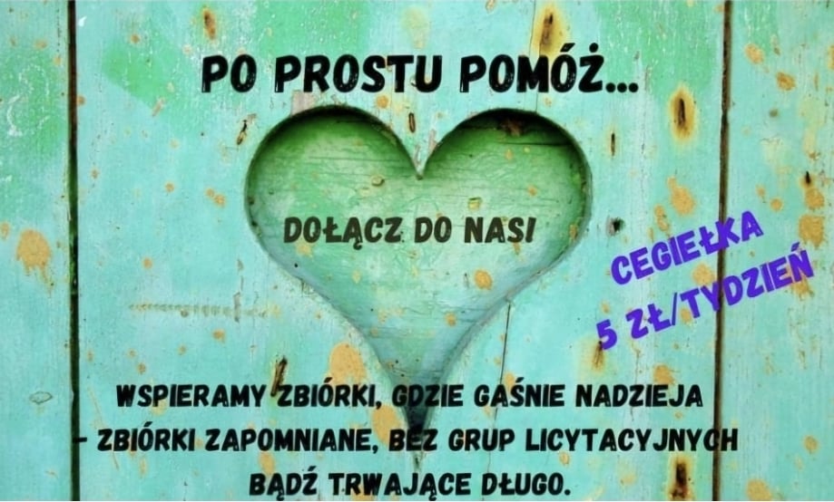 Zasada pomocy jest bardzo prosta – wsparcie cegiełką w wysokości 5 zł/tydzień oraz jak największa promocja zbiórki.