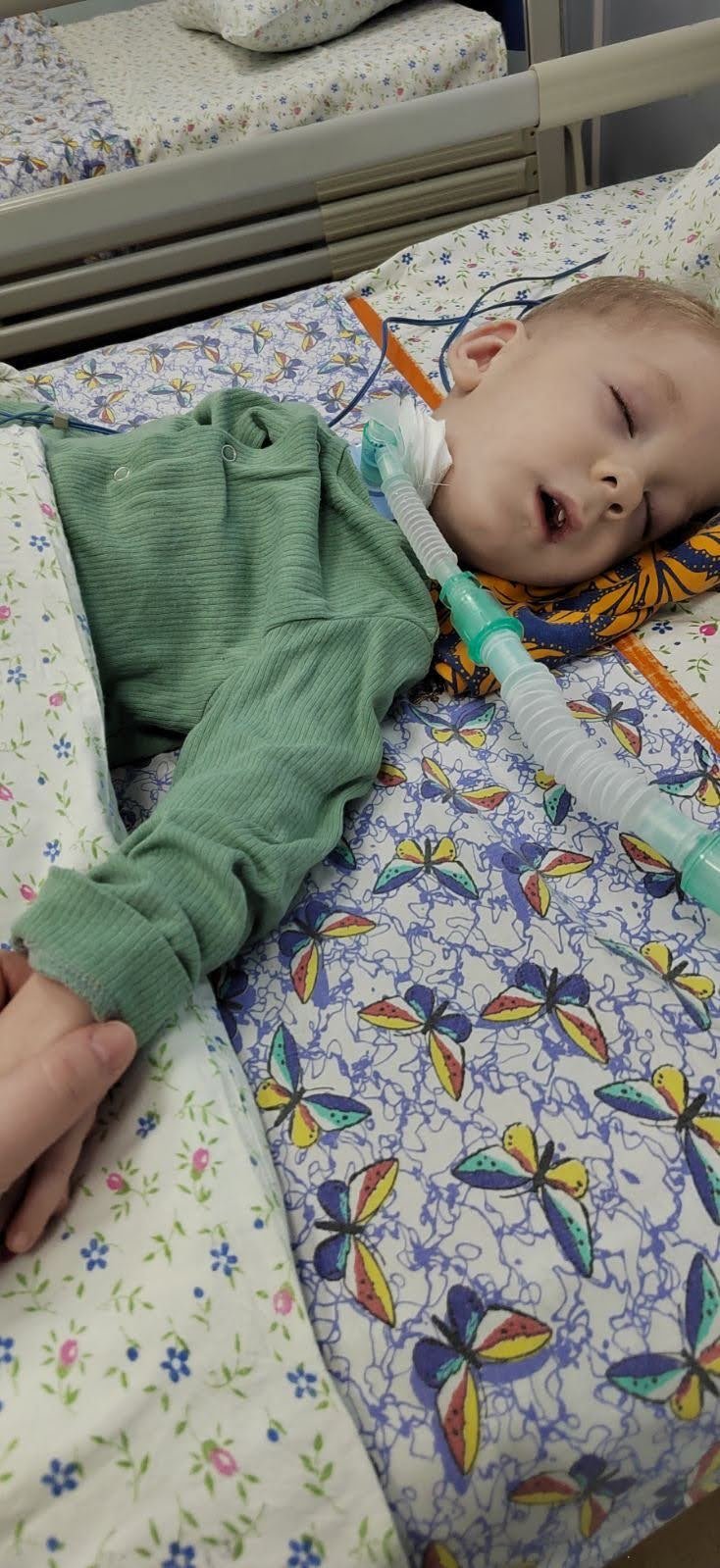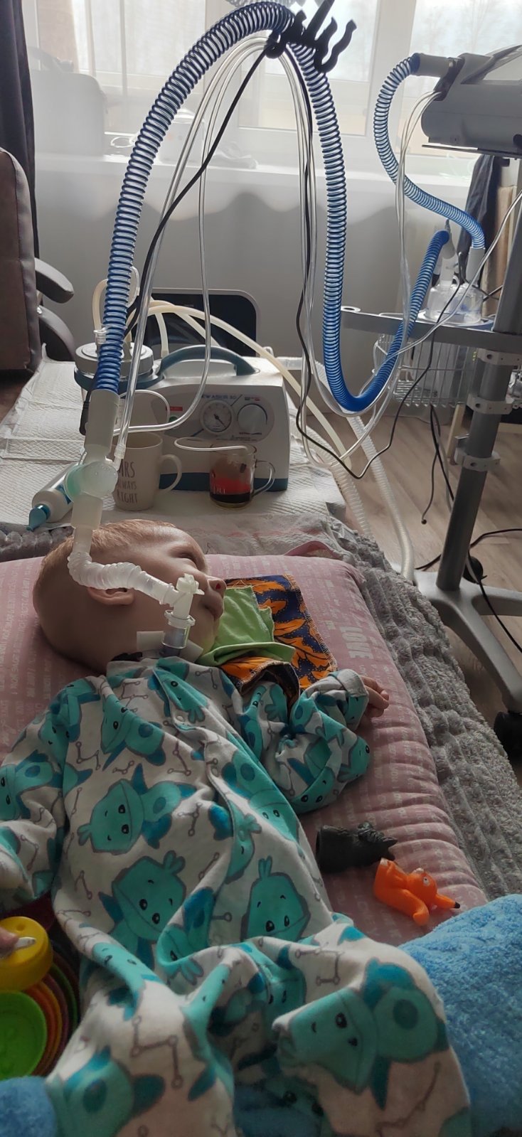 Romuś już nie oddycha sam - robi to za niego aparatura przez rurkę w jego tchawicy.