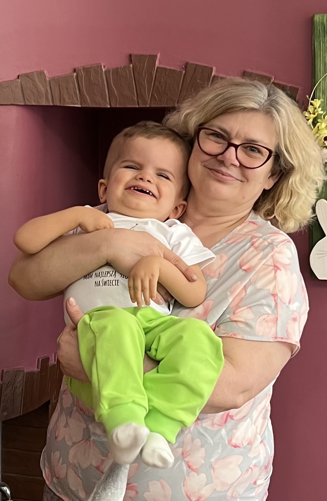Michaś ładnie się uśmiecha, ale nie wiemy ile rozumie, bo niestety nie komunikuje się. Ma sterdzone głębokie upośledzenie psychoruchowe... Ale mamy ciągle nadzieję, że dzięki intensywnej rehabilitacji jego rozwój ruszy do przodu, co zapewni mu pewną samodzielność.