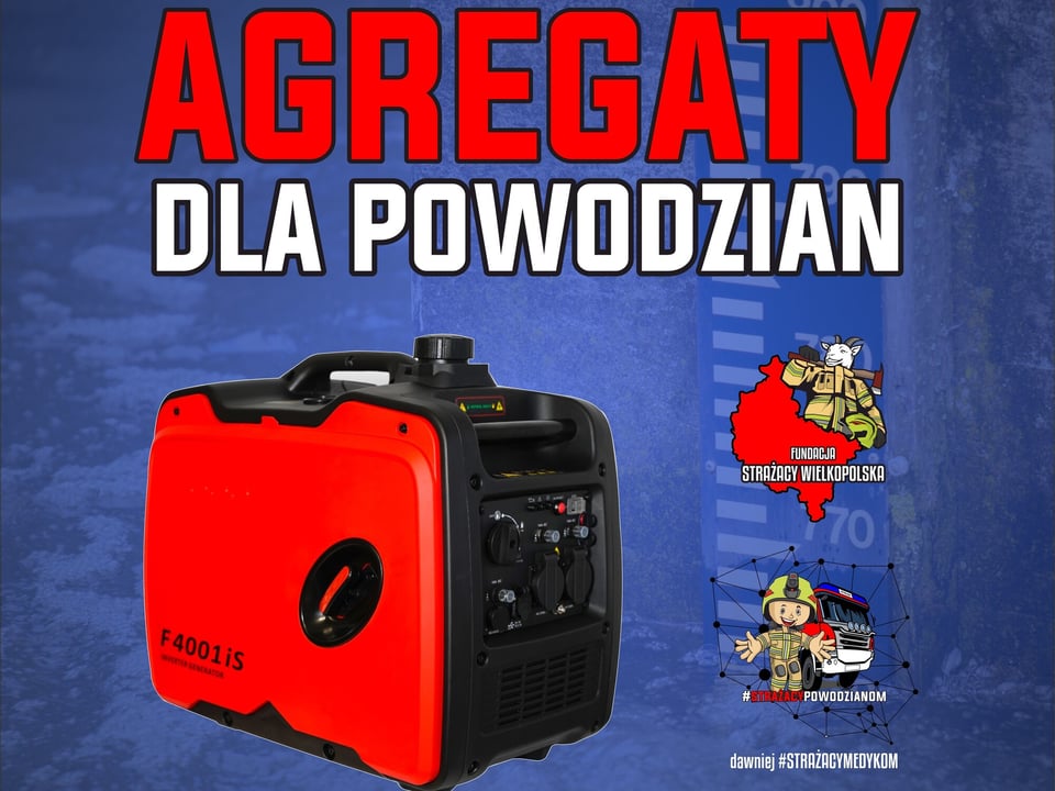 Pomóż strażakom walczyć z powodzią! Zbiórka na agregaty prądotwórcze Powódź, która dotknęła nasze tereny, przyniosła niewyobrażalne zniszczenia. Mieszkańcy zostali pozbawieni prądu, a strażacy, którzy na pierwszej linii walczą o bezpieczeństwo ludzi, potrzebują wsparcia, aby móc skutecznie prowad...