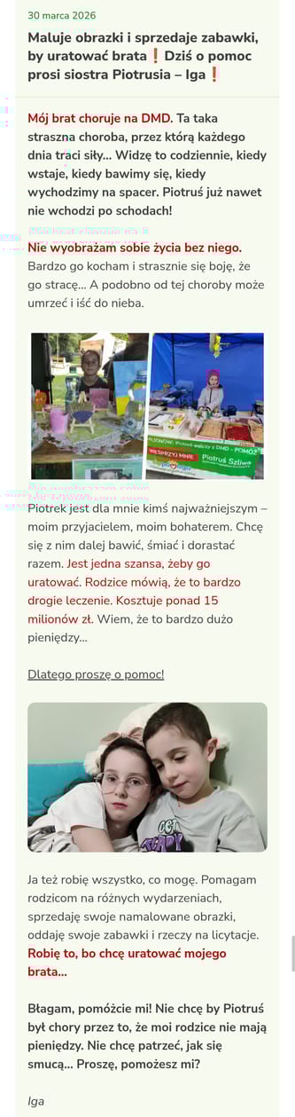 Kochani prosimy o wsparcie dla Piotrusia, który choruje na Dystrofie mięśniową Duchenne'a Każda wpłata przybliża do celu. 💚💚💚